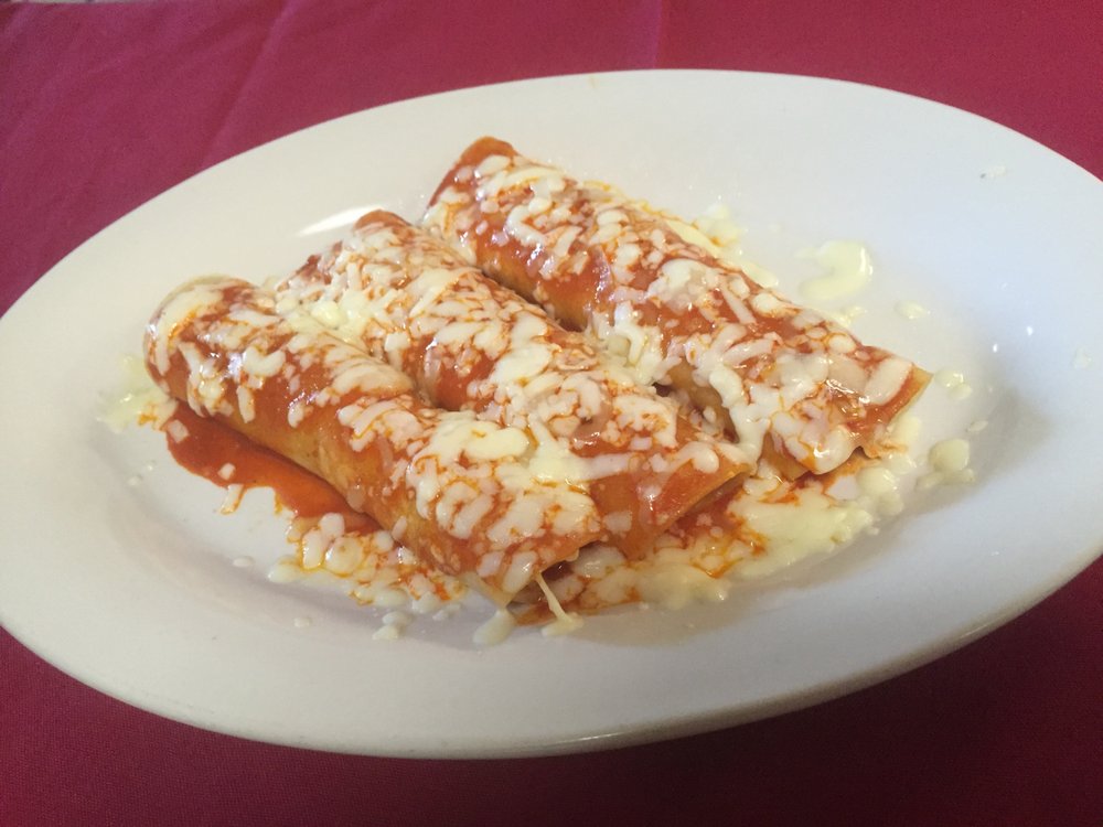 4 fried corn taquitos, 2 shredded beef, 2 chicken with green tomatillo sauce and ranchero sauce. Served with rice, beans & house salad.